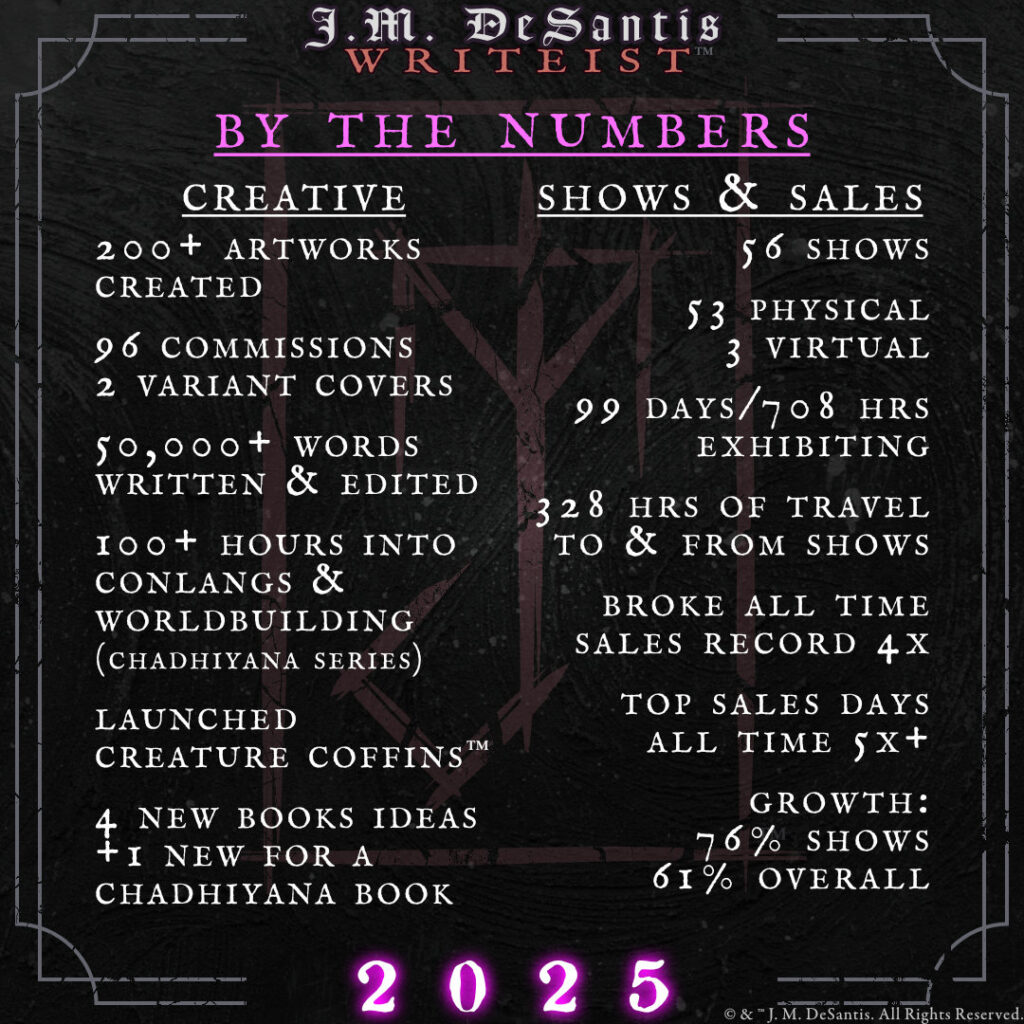 Of course, less shows does not mean “no shows”. I plan to keep the number under 35 total, if I can, next year (which is a huge reduction from 57/56 of the past two years, aiming closer to the 38 of 2023–which still felt significant because of how unevenly the shows were spread out). With the time I’ll earn back, it’s my intention to create at a greater level, putting more time into book and comic development, and putting Chadhiyana back into regular production again. I need to do that, not only for my fans and the good of my business itself, but I need it for my soul. I miss telling stories. It’s what fulfills me most creatively.